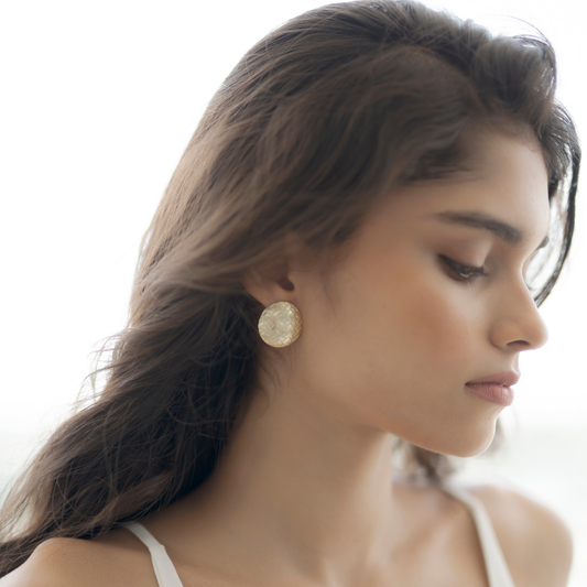 Nyra Earrings. Milky Quartz & Green Aventurine